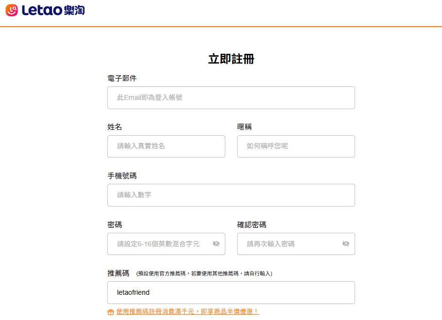 註冊樂淘時輸入專屬推薦碼 heidiletao,註冊 30 天內完成首筆第一次消費,消費金額超過 NT1,000,即符合【200 元回饋金】或【商品金額 50%off 折價券】好禮二選一資格。活動詳情可以到這邊看看。