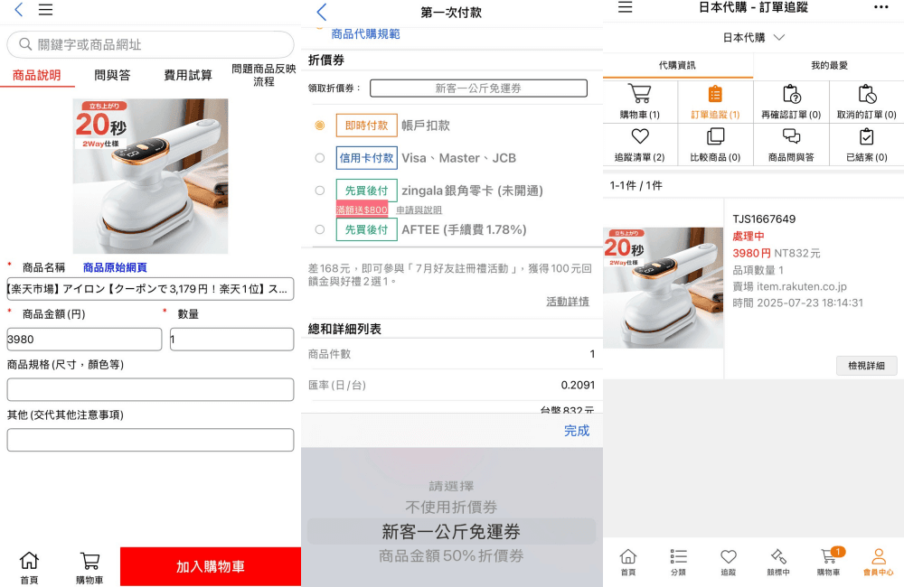 介面算直覺容易操作,只要熟悉後面的流程,每個人都可以變成日本購物達人喔。