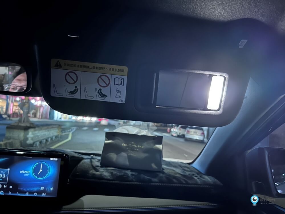 PS:前座的鏡子打開還有補光燈,也太貼心了。